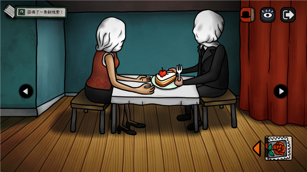 16、画像燃烧后出现会出现新内容,点击进入点击获得玫瑰花、黑色的帽子;