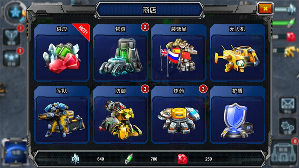 2、在商店中交战各种武器炮台,防止被其他人攻击,有多余的资源在建造军队。
