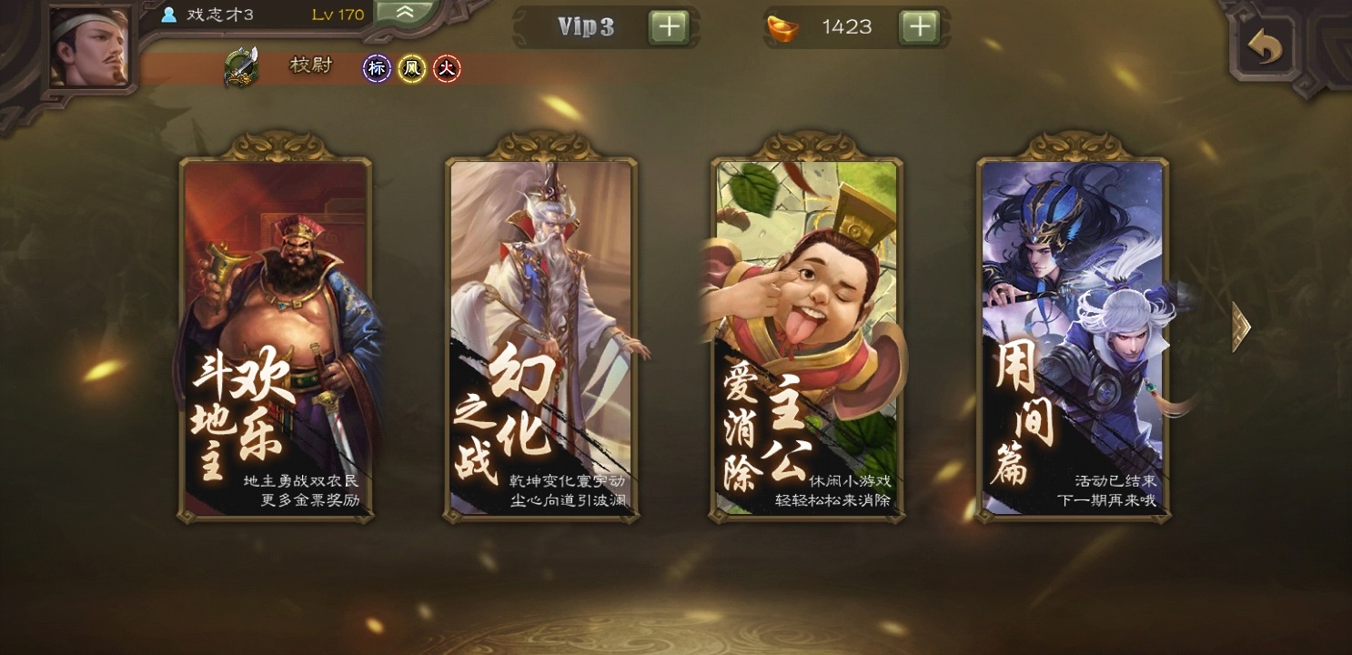 国战将池也和排位以及军争一样,都有专属的将池。对于萌新我个人并不推荐去玩国战,等你肝到150级搞到国战专属武将再去打也不迟。