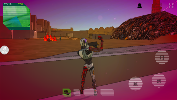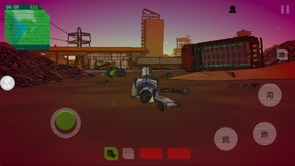 2、控制游戏中的机器人开始移动,穿梭在荒废的世界中,寻找生存的资源。