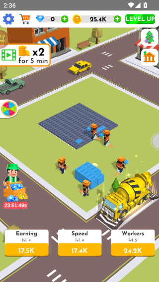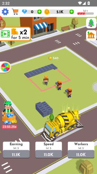 1、玩家通过点击屏幕,可以让你的工人快速工作起来,加快建造获得收益。