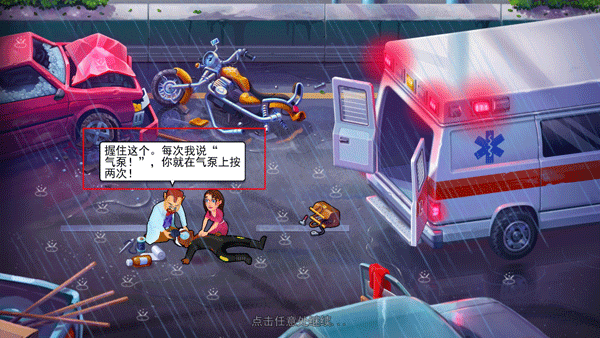 1、游戏的开始是一个男子出现了晕厥,有位医生正在抢救,玩家需要根据医生所需要的东西来点击屏幕获取。