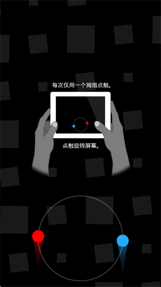 1、游戏开始后,玩家需要同时控制画面左右两侧的两个圆点,圆点会持续向前移动,无法停下。