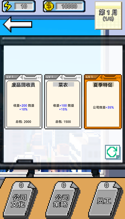 IMCEO是一款以创业经营为主题的像素风卡牌构筑策略手游,玩家将在IMCEO手游中扮演公司总经理,从乡镇创业起步,通过选择不同的创业天赋与初始卡组规划发展路线。IMCEO游戏核心围绕行动点分配与卡牌构筑展开,需要在公司文化、经营策略与员工收益等决策方向之间取舍,并通过替换、删除与强化卡牌优化套组结构,在商战对抗中搭配员工卡与策略卡提升收益压制对手,胜利后还能获得随机文化卡强化基础能力。 IMCEO融合轻度经营与Roguelike随机机制,每局流程紧凑且变化丰富,适合利用碎片时间体验策略搭配与成长推进的乐趣。