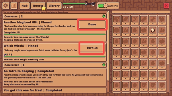 8、任务完成后,对应的进度条会呈现绿色,此时点击【DONE】或【Turn In】按钮即可结束操作。