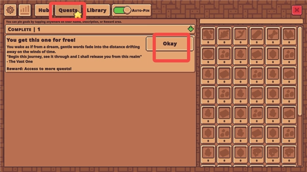 1、打开瓦斯特里亚的回响手机版后,先进入【Quests】界面,再点击【Okay】按钮。
