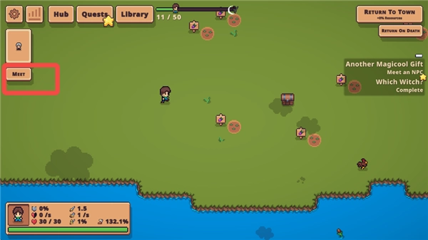 6、遇到一个NPC,点击【MEET】按钮。和他交谈后得知,他要建房子需要一些木材,希望我们帮忙收集一些木材。