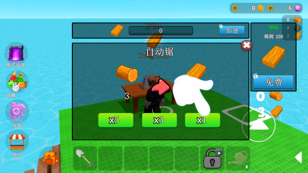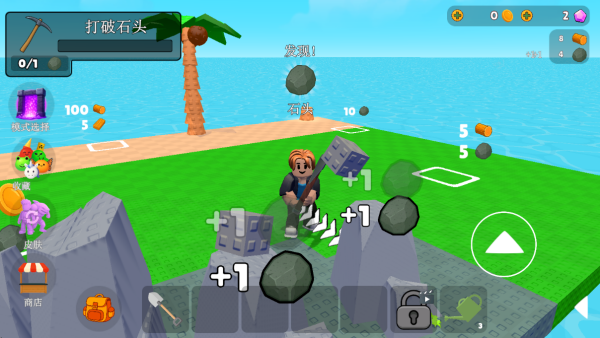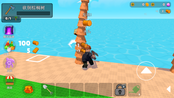 2、继续砍树,砍完之后开始执行下一个任务,打破石头开始建造岛屿的新区域。