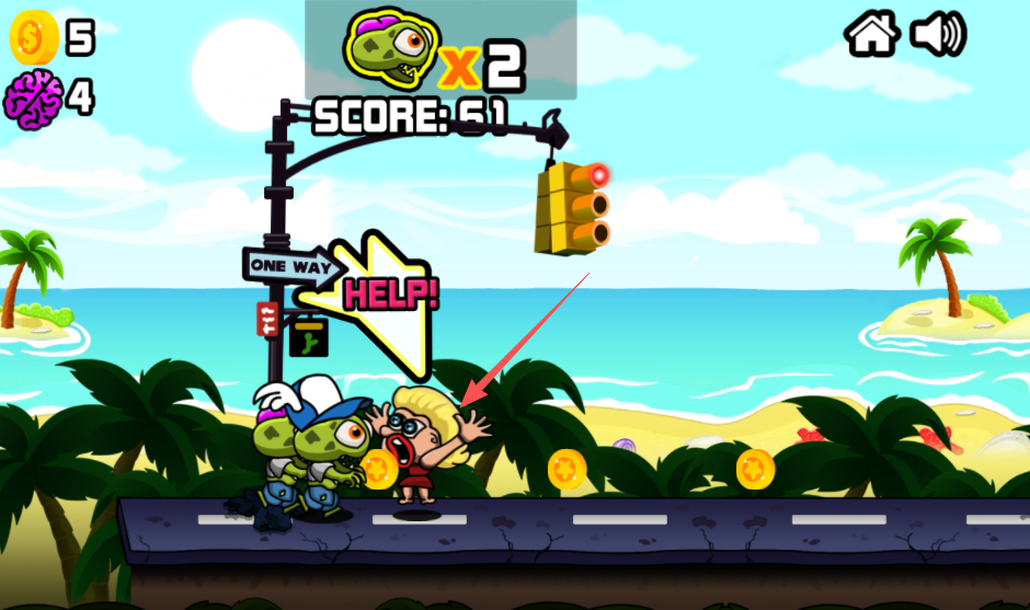 注意减员:掉落悬崖、被障碍物击中会减少僵尸数量,当数量归零时游戏结束。