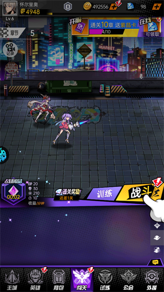 合理编队并推进主线关卡,快速解锁资源和功能。