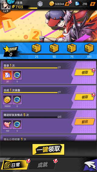 完成日常任务获取活跃度宝箱,积累资源提升角色。