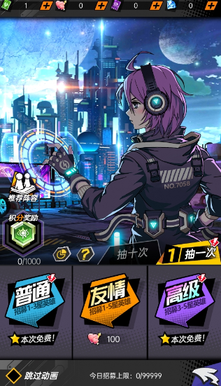 6、可以通过招募功能获取英雄,将他们编入队伍,组建属于你的超能战队一同作战