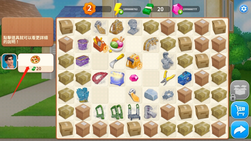 6、现在金钱不够的话,还是回到这里进行合并,当画面上的区域不够用的时候,可以将任意物品移动到这个这个位置上。