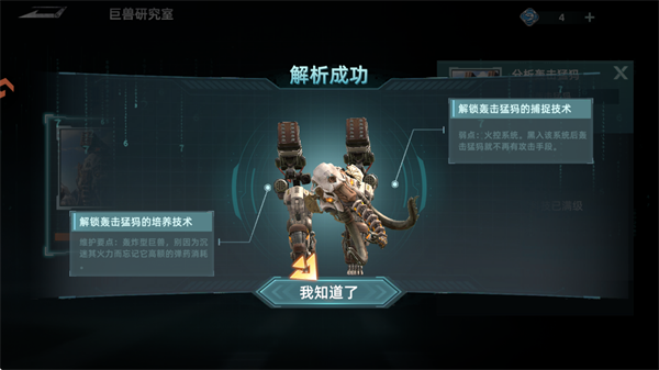 6、巨兽研究室中解锁各种巨兽科技,可以制服并捕捉各种强力巨兽。