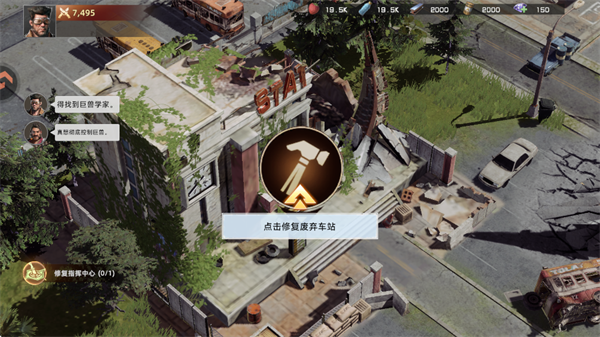 2、到达城镇避难所后需要修复建筑,指挥中心是主要建筑。