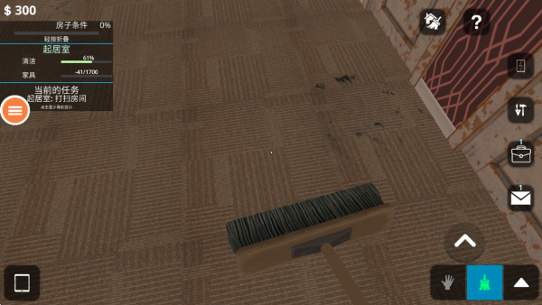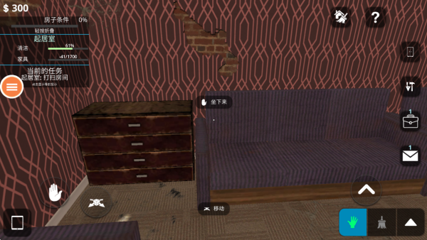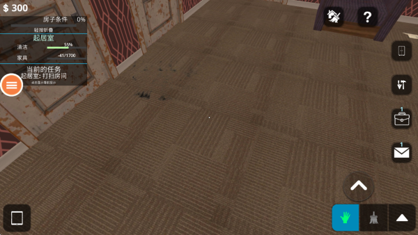 1、进入游戏,置身于一个房屋中,你的任务就是打扫房间,跟着要求开始清理。