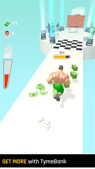肌肉冲刺是一款题材新颖的动作益智手游。其英文名又称Muscle Rush。游戏当中玩家将扮演一位拥有肌肉的猛男,你需依靠自己出色的操作,穿越层层阻碍,以此来锻炼自己强大的实力,挑战更多的关卡。 肌肉冲刺游戏采用了45度斜角立体场景,明亮逼真的游戏场景,构思巧妙的障碍设计,令人捧腹大笑的肌肉造型,为玩家营造了一个轻松欢快的卡通世界,在辅以各种生动的皮肤,为玩家带来了各种不同的乐趣。