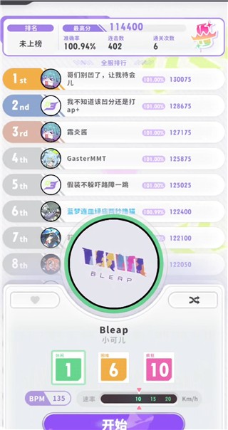 1.在游戏里,先任意挑选一首歌曲,以此进入对应关卡开启挑战。