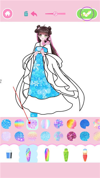 1、丰富多彩的颜料和亮粉材料可供玩家解锁,绘制最美的闪耀公主裙