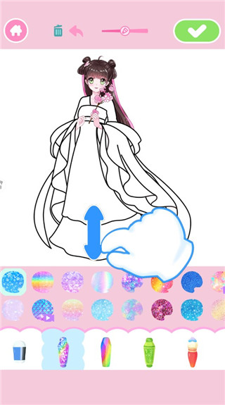 闪耀公主裙是一款以涂鸦和设计为主题的手游,在这款游戏中会有各种各样的公主裙,玩家可以根据自己的喜好随意对这些裙子进行创作,在丰富多样的绘画工具和颜色材料中自由选择,在不同的区域里给裙子涂抹上喜欢的颜色,尽情发挥属于你的创意,这样一套美丽漂亮的裙子就制作好了。