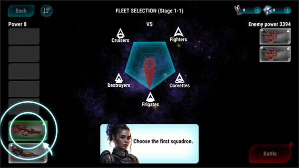 1、下载安装好星际飞船模拟器,点击battle进入游戏。