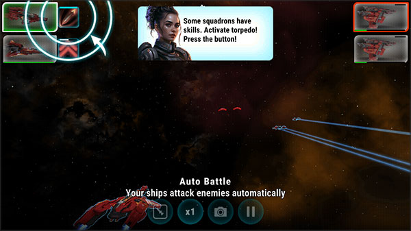 4、进入之后,点击飞船图标可以进行切换飞船,点击旁边的图标进行攻击。