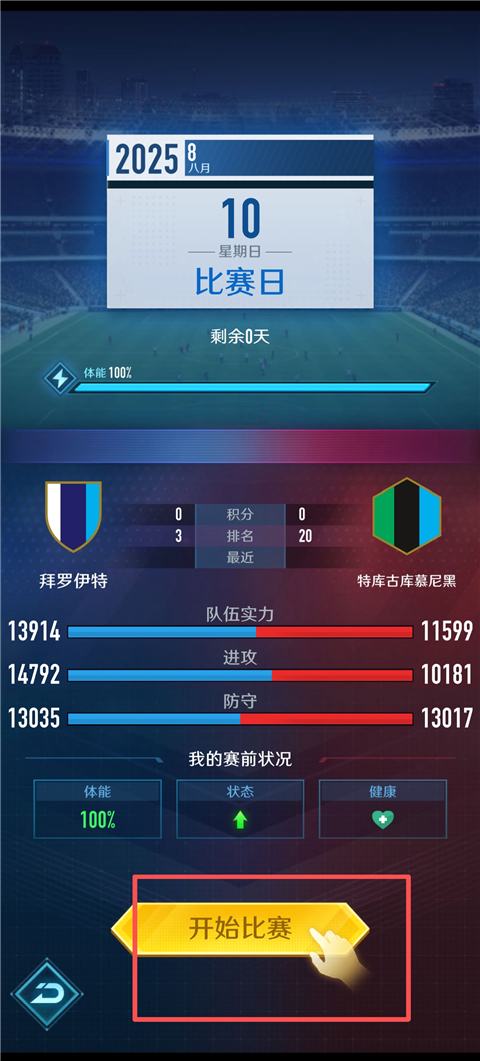 6、来到联赛的日子,点击开始比赛。