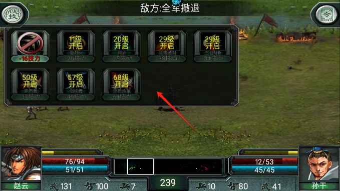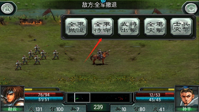选择武将出战顺序很重要,出征前补满生命值、技能值和士兵数,带不同兵种的武将,首选克制敌军的兵种出战,已方高级武将留在关键时刻对战敌方高级将领。