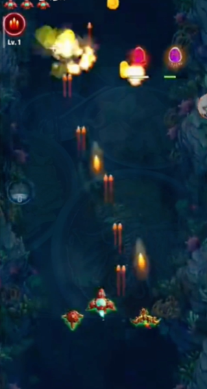 3、每款战机配备专属必杀技与成长路线,升级子弹形态可实现全屏覆盖式攻击,带来极具震撼力的视觉盛宴。