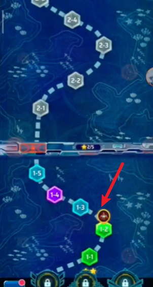 1、进入游戏后,从地图中选择初始关卡,开启你的深海征途。
