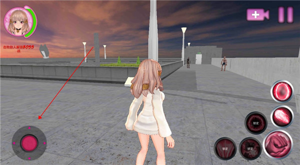 6、我们可以通过滑动左下角的轮盘控制角色移动,