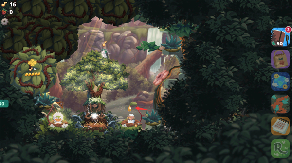 5、成年鸟将定期产出资源,利用这些资源来建造更多鸟巢或解锁新植物