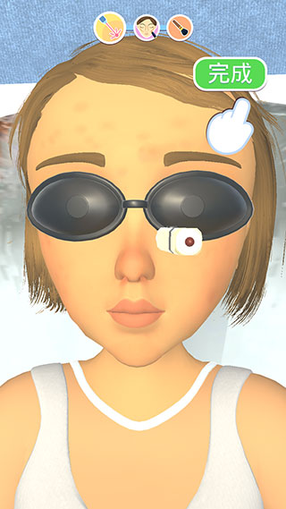 1、进入游戏之后,我们首先通过不断滑动来消除顾客脸上的瑕疵。