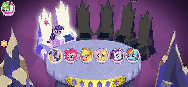 3、小游戏:与紫悦一起玩“弹弹球”,跟云宝玩“魔法之翼”,还可以和任何小马在“舞林争霸”中尬舞!