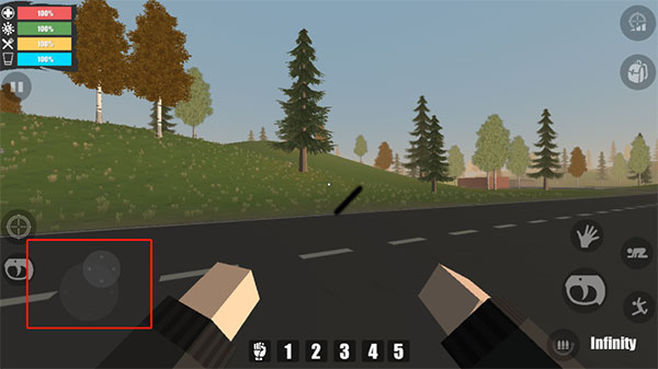 1、左下角的虚拟摇杆是控制人物的前进或者后退。