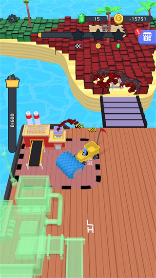 在本作中,玩家需驾驶挖掘机在不同岛屿区域进行资源采集,各类矿石价值各异,通过装载并出售矿石可获得金币收益。这些金币可用于升级挖掘机与拖车,从而提升采集效率与运输能力,进而挑战更深区域的稀有资源。