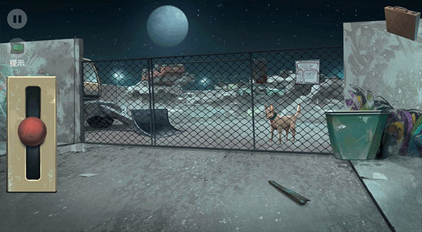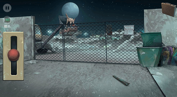 4.点击绳子控制升降机下降,将肉丢到铲斗上后狗会去吃,之后将铲斗升起困住狗子可进入回收站。