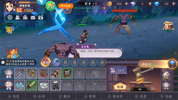 2、战斗采用全自动模式,解放双手,你只需专注于点击“锻造”功能,持续提升角色整体实力。