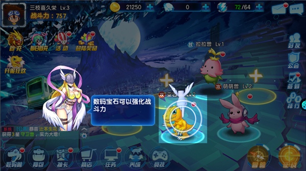 2、多线玩法、进化升星、宝石装备等,每个数码兽都会有不同的养成路线。