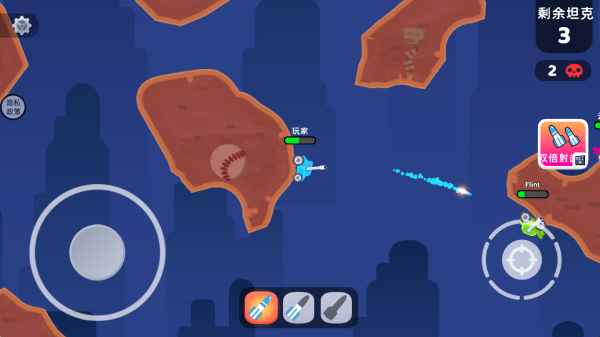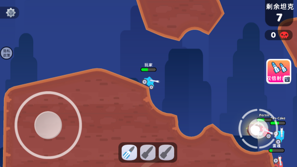 1、与多名玩家线上匹配展开坦克射击对战,左侧控制移动,右侧控制射击。