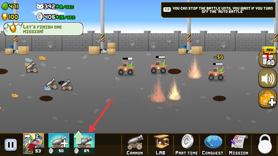 1、新手优先升级基础火炮,快速通关前五章积累猫薄荷。