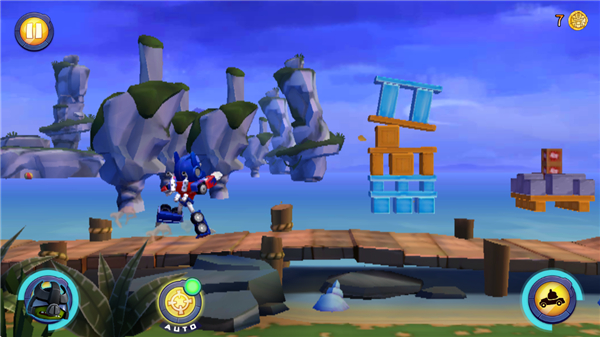 愤怒的小鸟变形金刚官方正版中,小鸟变形金刚还拥有汽车,汽车形态可以帮助你快速前进躲避掉落障碍物,最终完成关卡获得奖励。击败更多的小猪可以让你解锁更多的小鸟变形金刚,还可以升级它们,购买不同的配件搭配在身上,挑战前甚至可以邀请其它玩家帮助你在关键时刻保护你一起作战一段时间。