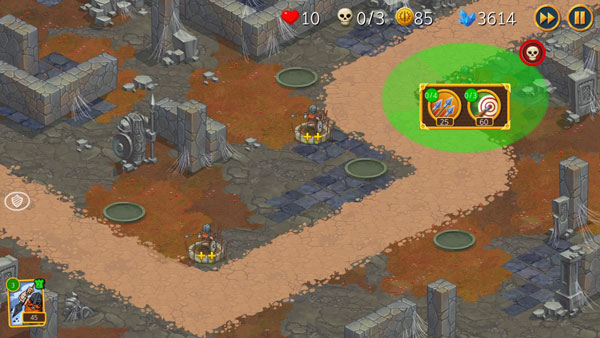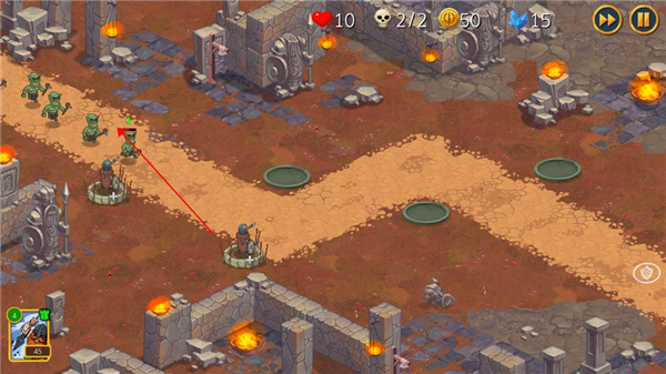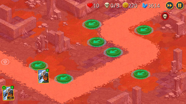 2、该游戏在基础的塔防玩法下没有什么根本性的变化,只有你能成功抵御怪物的路线入侵即可挑战成功,但游戏的独特性在于这里的防御采用了卡片形式,玩家们则需要根据已有的卡片来部署塔防,塔和炮塔代表战士,弓箭手保卫你的宝座。