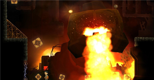 1、这一场boss战十分的简单,只需要我们不断靠左走,防止被履带被推到右边的熔炉当中;