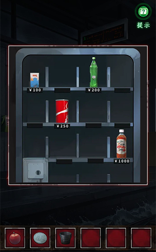 13、在这个时候玩家们先观察自动售卖机上面饮料的摆放位置,然后使用钥匙打开候车厅的大门,找到右下角的箱子;