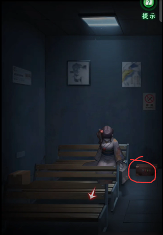 5、完成剧情后,玩家们退回候车厅,这次玩家们来到候车厅的右边,在这边有一个抱着箱子的人偶,玩家们需要找到线索将然偶的手拿开;