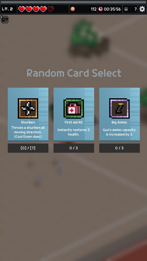 4、消灭丧尸会掉落金币和其他道具,拾取奖励,可以提升人物等级,并可自选作战武器和其他“buff”。