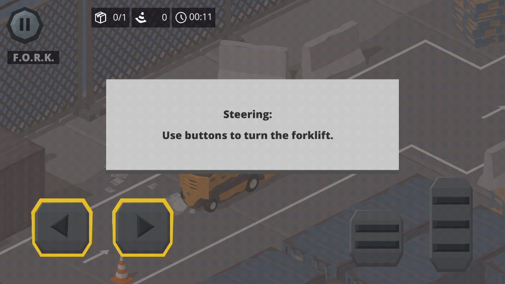 6、屏幕左侧的摇杆,按住向上向下,可以控制叉车设备的上升下降。