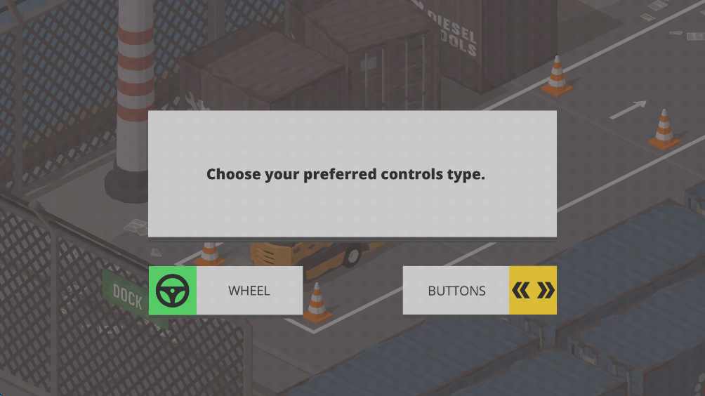 2、选择操控方式,左侧是“方向盘”,右侧是“左右按键”,可以根据喜好选择。