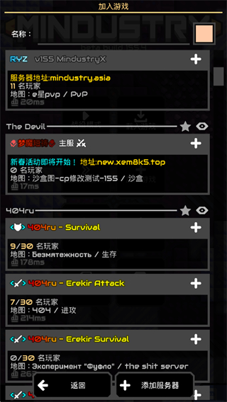 2、点添加服务器,输入房主局域网IP,确定后加入。